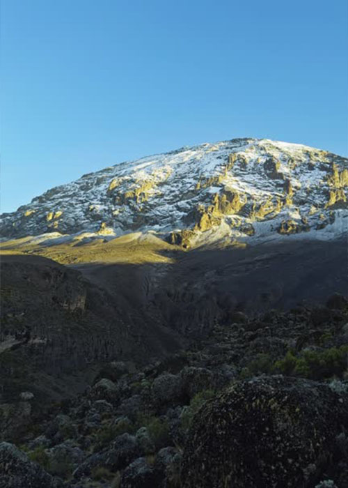 We spend the day traversing the ancient volcanic floor of the plateau, heading toward the base of the mountain’s main peaks. The easy pace today provides excellent acclimatization while offering panoramic views of Kibo and the surrounding volcanic cones.